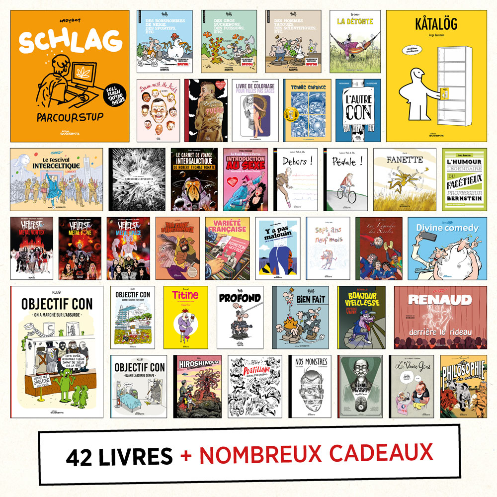 Le pack braderie “la totale”, déjà bien costaud, se renforce et passe de 39 à 47 livres ! On y ajoute toujours plus de goodies qui accompagnent ces nouveaux livres : c’est la maxi bonne affaire de notre boutique en ligne.